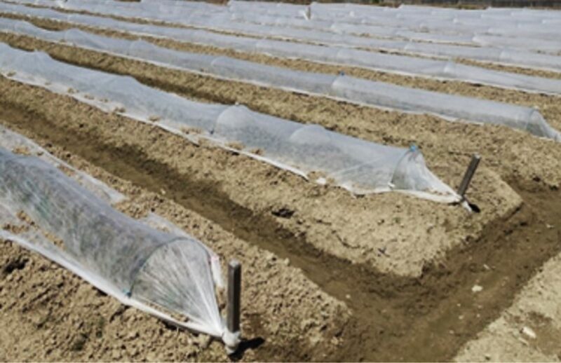 ・定植直後から、不織布トンネル(「パオパオ90」等、ビニールは不可)で被覆する