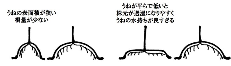 ・株元が過湿・高温になりやすいので、植穴は小さくしない。