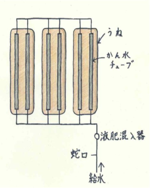 ・潅水チューブの配管は、水圧が均一になるようループ状に接続する。