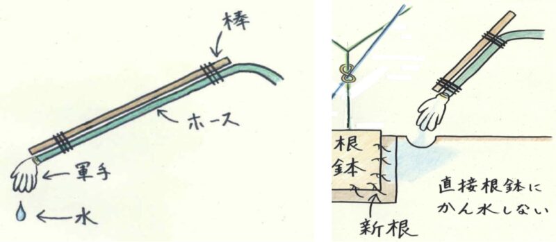 ●活着後の潅水は、手潅水から潅水チューブに変更する。